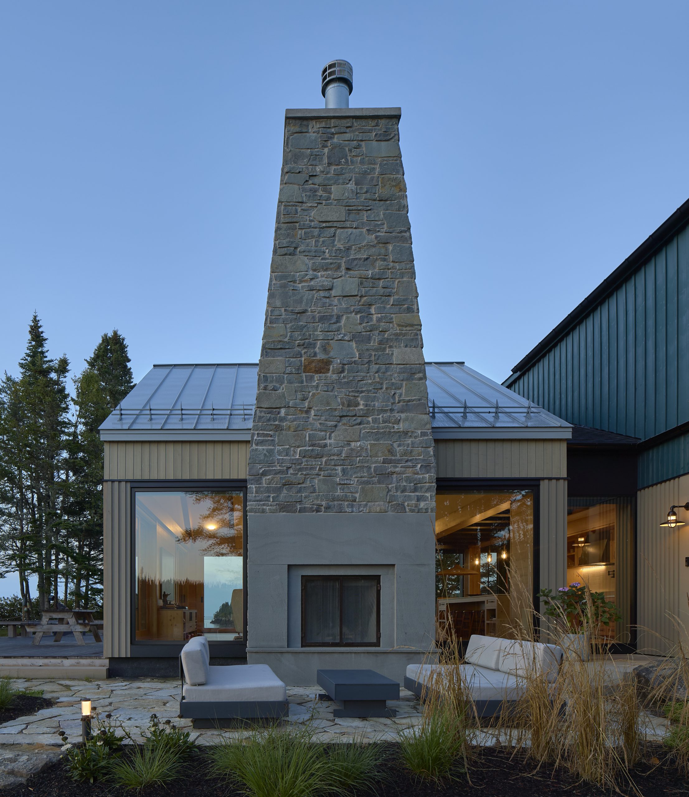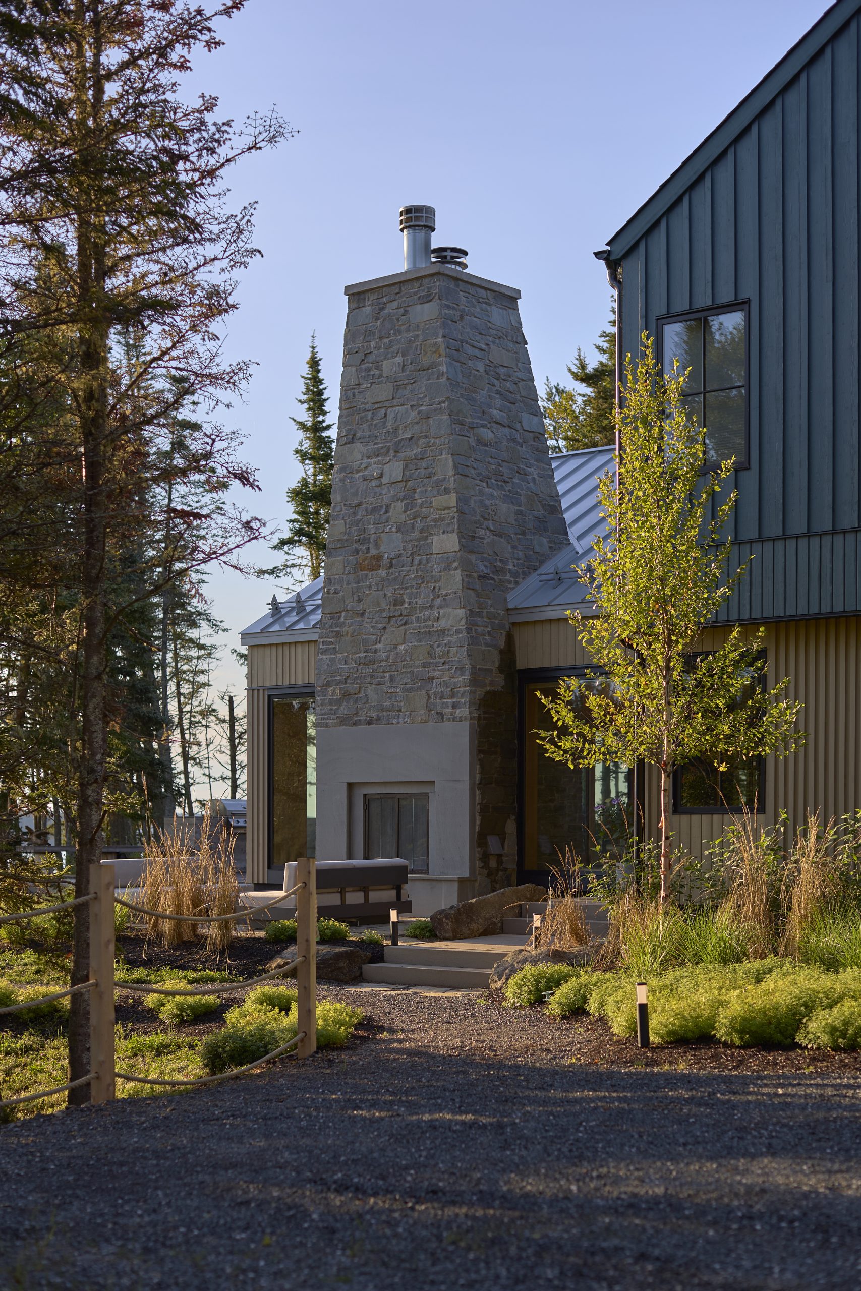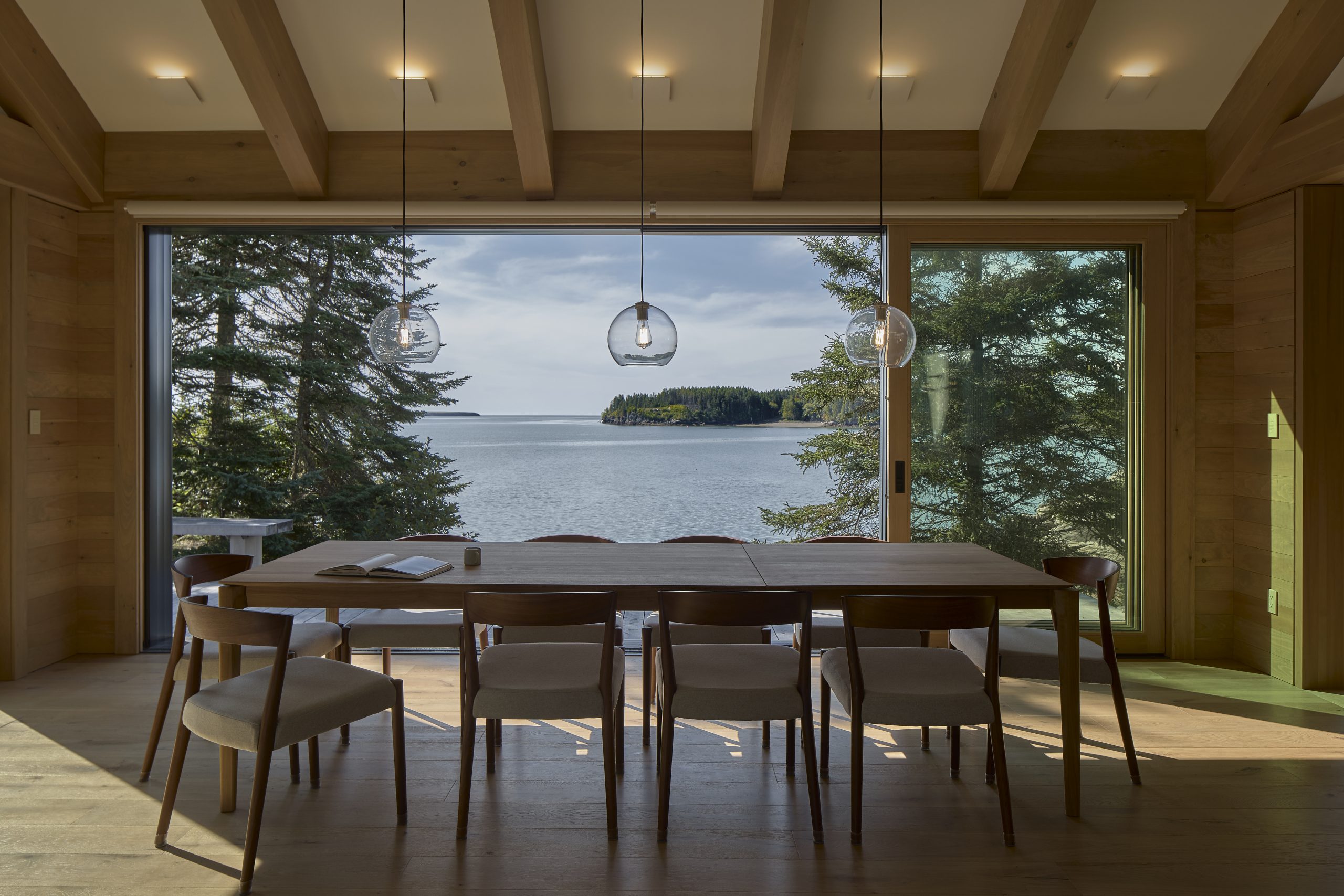 Set on a rocky outcropping just steps from the water, this coastal home has stunning water views from almost every room in the house. Using local wood and stone this house exudes comfort and warmth.